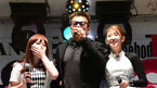 [OSEN=최규한 기자] 소녀듀오 피프틴앤드(15&, 박지민·백예린)가 8일 밤 서울 강남역 M스테이지에서 게릴라 콘서트를 열었다. 가수 박진영이 함께 무대에 올라 팬들에게 인사하고 있다. 박지민과 백예린은 자신들의 SNS인 트위