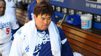 [OSEN=캘리포니아 로스앤젤레스, 민경훈 기자] 8일 새벽(이하 한국시간) 미국 캘리포니아 로스앤젤레스 다저스타디움에서 열린 LA 다저스와 피츠버그 파이어리츠와의 3차전 경기, 8회 다저스 류현진이 휴식을 취하고 있다 다저스