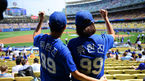 [OSEN=캘리포니아 로스앤젤레스, 민경훈 기자] 8일 새벽(이하 한국시간) 미국 캘리포니아 로스앤젤레스 다저스타디움에서 열린 LA 다저스와 피츠버그 파이어리츠와의 3차전 경기 전 류현진과 크루즈가 장난을 치고 있다 다저스