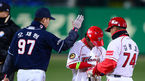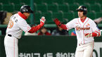 [OSEN=문학,박준형 기자] 9일 오후 인천 문학구장에서 열린 '2013 한국야쿠르트 세븐 프로야구' SK 와이번스와 넥센 히어로즈의 경기 8회말 2사 SK 최정이 솔로홈런을 날리고 한혁수 3루 코치와 하이파이브를 하고 있다 상승세를 타