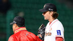 [OSEN=문학,박준형 기자] 9일 오후 인천 문학구장에서 열린 '2013 한국야쿠르트 세븐 프로야구' SK 와이번스와 넥센 히어로즈의 경기 8회초 2사 1루 SK 이만수 감독이 마운드에 오르자 세든 선발투수가 미소 짓고 있다 상승세를 타고