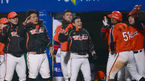 [OSEN=대구,김영민 기자] 9일 오후 대구구장에서 열린 '2013 한국야쿠르트 세븐 프로야구' 삼성 라이온즈와 한화이글스 경기 한화 7회초 2사 김경언 좌월솔로 홈런을 날리고 덕아웃 동료의 환영을 받고 있다. 삼성은 다승왕 출신 윤