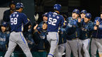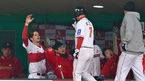 [OSEN=문학,박준형 기자] 9일 오후 인천 문학구장에서 열린 '2013 한국야쿠르트 세븐 프로야구' SK 와이번스와 넥센 히어로즈의 경기 5회말 2사 3루 SK 정근우의 선취 1타점 적시타때 홈을 밟은 3루 주자 박진만이 동료들의 축하를 받