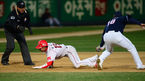 [OSEN=광주, 최규한 기자] 9일 오후 광주 무등경기장에서 '2013 한국야쿠르트 세븐 프로야구' KIA 타이거즈 대 두산 베어스의 경기가 열렸다. 3회말 KIA 공격 1사 2루 상황, 2번 김선빈의 투수 앞 땅볼 때 2루 주자 이용규가 협살에 걸