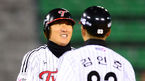 [OSEN=잠실, 이대선 기자] 9일 오후 서울 잠실야구장에서 열린 2013 한국야쿠르트 세븐프로야구 LG 트윈스와 NC 다이노스의 경기, 4회말 1사 1,2루에서 LG 이진영이 좌전 적시타를 치고 김인호 코치와 하이파이브를 하고 있다. 개막
