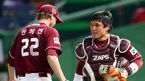 [OSEN=문학,박준형 기자] 9일 오후 인천 문학구장에서 열린 '2013 한국야쿠르트 세븐 프로야구' SK 와이번스와 넥센 히어로즈의 경기 4회말 이닝 종료 후 넥센 밴 헤켄 선발투수와 박동원 포수가 이야기 하며 더그아웃으로 들어가고