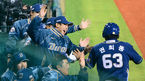 [OSEN=잠실, 이대선 기자] 9일 오후 서울 잠실야구장에서 열린 2013 한국야쿠르트 세븐프로야구 LG 트윈스와 NC 다이노스의 경기, 4회초 1사 2,3루에서 NC 이현곤이 내야 안타 때 홈을 밟은 3루주자 권희동이 덕아웃에서 동료들의 축