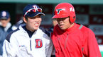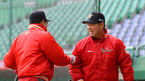 [OSEN=문학,박준형 기자] 9일 오후 인천 문학구장에서 열리는 '2013 한국야쿠르트 세븐 프로야구' SK 와이번스와 넥센 히어로즈의 경기 전 SK 이광근 코치가 공 치우는 이만수 감독을 말리고 있다. 상승세를 타고 있는 두 팀이 그 상
