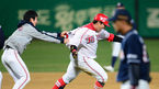 [OSEN=광주, 최규한 기자] 10일 오후 광주 무등경기장에서 '2013 한국야쿠르트 세븐 프로야구' KIA 타이거즈 대 두산 베어스의 경기가 열렸다. 연장 12회말 KIA 공격 2사 1, 2루 상황 4번 나지완이 결승 끝내기 적시타를 날리고 동료들