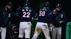 [OSEN=광주, 최규한 기자] 11일 오후 광주 무등경기장에서 '2013 한국야쿠르트 세븐 프로야구' KIA 타이거즈 대 두산 베어스의 경기가 열렸다. 4회초 두산 공격 2사 2, 3루 상황 5번 최준석의 2타점 적시타로 득점에 성공한 김현수와 홍