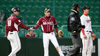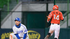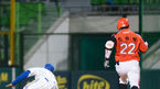 [OSEN=광주, 최규한 기자] 11일 오후 광주 무등경기장에서 '2013 한국야쿠르트 세븐 프로야구' KIA 타이거즈 대 두산 베어스의 경기가 열렸다. 4회초 두산 공격 무사 1루 상황 8번 양의지가 투런포를 날리고 조원우 3루 코치와 인사를