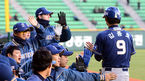 [OSEN=잠실 ,백승철 기자] 11일 오후 서울 잠실구장에서 열린 '2013 한국야쿠르트 세븐 프로야구' LG 트윈스와 NC 다이노스의 경기 1회초 무사 2루 차화준의 1타점 적시타에 홈을 밟은 김종호가 덕아웃에서 동료들과 하이파이브를 하