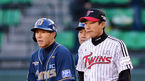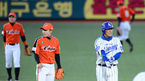 [OSEN=대구, 지형준 기자] 11일 오후 대구구장에서 '2013 한국야쿠르트 세븐 프로야구' 삼성 라이온즈와 한화이글스 경기가 열렸다. 1회말 1사 2루에서 삼성 이승엽이 동점 1타점 적시 2루타를 날리고 김태균 코치에게 보호장비를