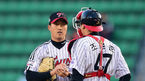 [OSEN=잠실 ,백승철 기자] 11일 오후 서울 잠실구장에서 열린 '2013 한국야쿠르트 세븐 프로야구' LG 트윈스와 NC 다이노스의 경기 1회초 무사 만루 신정락이 조윤준과 마운드에서 이야기를 나누고 있다. NC의 사이드암투수 이재학이