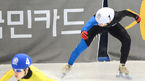 [OSEN=목동, 곽영래 기자] 11일 오후 서울 목동아이스링크에서 열린 '2013 KB금융 쇼트트랙 스피트스케이팅 챔피언십' 에서 남자 1000M 준준결승전에서 (좌측) 곽윤기가 미끄러지고 있다. 총 56명이 참가한 이번 대회는 10-11일 양일간