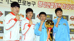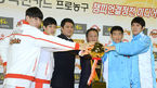 [OSEN=잠실학생체, 정송이 기자] 12일 오전 서울 잠실학생체육관에서 열린 '2012-2013 KBL 챔피언결정전 미디어데이'에서 SK 최부경 김선형 모비스 양동근 함지훈이 포토타임을 갖고 있다. 챔피언결정전 미디어데이에는 SK 문경은 감