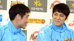 [OSEN=잠실학생체, 정송이 기자] 12일 오전 서울 잠실학생체육관에서 열린 '2012-2013 KBL 챔피언결정전 미디어데이'에서 모비스 양동근 함지훈이 이야기를 나누고 있다. 챔피언결정전 미디어데이에는 SK 문경은 감독과 모비스 유재
