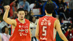 [OSEN=잠실학생체, 최규한 기자] 13일 오후 서울 잠실학생체육관에서 '2012-2013 KB국민카드 프로농구 챔피언결정전 1차전' 서울 SK 대 울산 모비스의 경기가 열렸다. 4쿼터, 모비스 양동근이 역전 3점포를 터트리고 동료들과 환호하