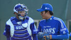 [OSEN=목동, 곽영래 기자] 14일 오후 서울 목동구장에서 열린 '2013 한국야쿠르트 세븐 프로야구' 넥센 히어로즈와 삼성 라이온즈의 경기 8회말 삼성 심창민과 진갑용이 이닝을 마무리하고 더그아웃으로 들어오면서 이야기를 나누