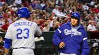 [OSEN=애리조나 피닉스, 민경훈 기자] 14일 오전(이하 한국시간) 미국 애리조나주 피닉스 체이스필드에서 벌어진 애리조나 다이아몬드백스와 LA 다저스의 경기 6회초 2사 3연속 안타로 진루한 류현진이 후속 타자의 안타로 득점을