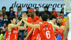 [OSEN=울산동천체, 정송이 기자] 17일 오후 울산 동천체육관에서 열린 '2012-2013 KB국민카드 프로농구 챔피언결정 4차전 울산 모비스와 서울 SK의 경기, 4쿼터 득점에 성공한 모비스 선수들이 서로를 격려하고 있다. 모비스는 지난 16