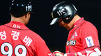 [OSEN=포항, 이대선 기자] 17일 오후 포항야구장에서 열린 2013 한국야쿠르트 세븐프로야구 삼성 라이온즈와 SK 와이번스의 경기, 3회초 2사 3루에서 SK 최정이 적시타를 치고 정경배 코치와 하이파이브를 하고 있다. 삼성과 SK는 릭
