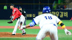 [OSEN=포항, 이대선 기자] 17일 오후 포항야구장에서 열린 2013 한국야쿠르트 세븐프로야구 삼성 라이온즈와 SK 와이번스의 경기, 2회초 무사 1루에서 삼성 밴덴헐크가 SK 조성우의 번트 타구를 잡고 있다. 삼성과 SK는 릭 밴덴헐크(
