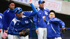 [OSEN=포항, 이대선 기자] 17일 오후 포항야구장에서 열린 2013 한국야쿠르트 세븐프로야구 삼성 라이온즈와 SK 와이번스의 경기, 경기에 앞서 삼성 이승엽이 훈련 중 동료들과 장난을 치고 있다. 삼성과 SK는 릭 밴덴헐크(삼성)와