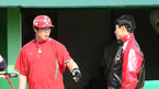 [OSEN=광주, 최규한 기자] 17일 오후 광주구장에서 열리는 '2013 한국야쿠르트 세븐 프로야구' KIA 타이거즈 대 LG 트윈스의 경기를 앞두고 김재현 해설위원과 LG 이대형이 인사를 나누고 있다. LG는 통산 첫 선발승을 노리는 사이드