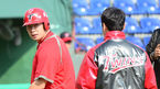 [OSEN=광주, 최규한 기자] 17일 오후 광주구장에서 열리는 '2013 한국야쿠르트 세븐 프로야구' KIA 타이거즈 대 LG 트윈스의 경기를 앞두고 KIA 나지완과 LG 현재윤이 대화를 나누고 있다. LG는 통산 첫 선발승을 노리는 사이드암투수