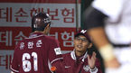 [OSEN=광주, 최규한 기자] 18일 오후 광주구장에서 '2013 한국야쿠르트 세븐 프로야구' KIA 타이거즈 대 LG 트윈스의 경기가 열렸다. 8회초 LG 공격 1사 3루 상황 9번 이대형의 안타로 득점에 성공한 조윤준이 더그아웃 동료들과 인사를