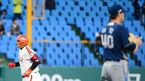 [OSEN=대전, 이대선 기자] 18일 오후 대전 한밭종합운동장 야구장에서 열린 2013 한국야쿠르트 세븐프로야구 한화 이글스와 NC 다이노스의 경기, 2회말 무사에서 한화 김태균이 좌월 솔로 홈런을 치고 그라운드를 돌고 있다. 팀의