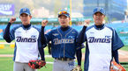 [OSEN=대전, 이대선 기자] 18일 오후 대전 한밭종합운동장 야구장에서 열린 2013 한국야쿠르트 세븐프로야구 한화 이글스와 NC 다이노스의 경기, 경기에 앞서 넥센에서 트레이드 된 NC 이창섭, 지석훈, 박정준이 취재진을 향해 포즈