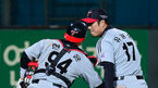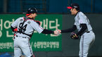 [OSEN=대전, 이대선 기자] 18일 오후 대전 한밭종합운동장 야구장에서 열린 2013 한국야쿠르트 세븐프로야구 한화 이글스와 NC 다이노스의 경기, 7회말 무사 3루에서 한화 김경언이 좌전 동점 적시타를 치고 이종범 코치와 하이파이