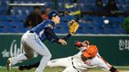 [OSEN=대전, 이대선 기자] 18일 오후 대전 한밭종합운동장 야구장에서 열린 2013 한국야쿠르트 세븐프로야구 한화 이글스와 NC 다이노스의 경기, 7회말 무사 1루에서 한화 김경언 타석 때 1루주자 정현석이 2루 도루를 시도, 볼이 빠