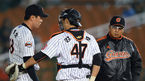 [OSEN=부산,박준형 기자] 18일 오후 부산 사직구장에서 열린 '2013 한국야쿠르트 세븐 프로야구' 롯데 자이언츠와 넥센 히어로즈의 경기 6회초 3실점 허용한 롯데 진명호 투수가 정민태 투수 코치와 이야기를 나누고 있다 지난 16일
