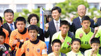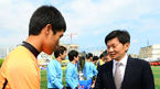 [OSEN=부산,박준형 기자] 19일 오후 부산 동래중학교 운동장서 열린 2013 대교눈높이 전국 중등 축구 리그 개막전 동래중과 신라중의 경기,경기에 앞서 정몽규 대한축구협회장이 선수들을 격려하고 있다./soul1014@osen.co.kr