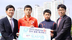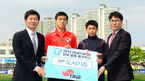[OSEN=부산,박준형 기자] 19일 오후 부산 동래중학교 운동장서 열린 2013 대교눈높이 전국 중등 축구 리그 개막전 동래중과 신라중의 경기,경기에 앞서 정몽규 대한축구협회장이 도서기증을 하며 기념 촬영을 하고 있다./soul1014@ose