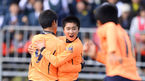 [OSEN=부산,박준형 기자] 19일 오후 부산 동래중학교 운동장서 열린 2013 대교눈높이 전국 중등 축구 리그 개막전 동래중과 신라중의 경기,전반 동래중 임진혁이 선취골을 넣고 동료들과 기뻐하고 있다./soul1014@osen.co.kr