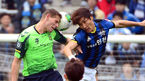 [OSEN=인천, 곽영래 기자] 20일 오후 인천축구전용경기장에서 열린 '현대오일뱅크 K리그 클래식 2013' 8라운드 인천 유나이티드와 전북 현대의 경기 전반 전북 케빈과 인천 이윤표가 공중볼 경합을 벌이고 있다. 인천은 전북과 지난