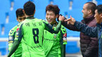 [OSEN=인천, 곽영래 기자] 20일 오후 인천축구전용경기장에서 열린 '현대오일뱅크 K리그 클래식 2013' 8라운드 인천 유나이티드와 전북 현대의 경기 전반 전북 이승기가 선제골을 넣고 파비오 감독대행과 에닝요에게 축하받고 있