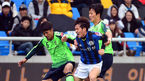 [OSEN=인천, 곽영래 기자] 20일 오후 인천축구전용경기장에서 열린 '현대오일뱅크 K리그 클래식 2013' 8라운드 인천 유나이티드와 전북 현대의 경기 전북 이승기가 선제골을 넣고 레오나르도와 포옹을 하고 있다. 인천은 전북과 지