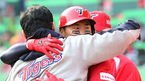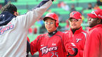 [OSEN=인천, 이대선 기자] 21일 오후 인천 문학야구장에서 열린 2013 한국야쿠르트 세븐프로야구 SK 와이번스와 KIA 타이거즈의 경기, 9회초 2사에서 KIA 이범호가 좌월 솔로포를 치고 덕아웃에서 서재응의 축하를 받고 있다. KIA는 양