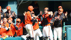 [OSEN=잠실, 곽영래 기자] 21일 오후 서울 잠실야구장에서 열린 '2013 한국야쿠르트 세븐 프로야구' 두산 베어스와 한화 이글스의 경기, 5회초 2사 3루 한화 추승우가 이대수의 적시타로 득점을 올린 뒤 선수들과 기뻐하고 있다. 두