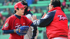 [OSEN=인천, 이대선 기자] 21일 오후 인천 문학야구장에서 열린 2013 한국야쿠르트 세븐프로야구 SK 와이번스와 KIA 타이거즈의 경기, 6회말 2사에서 SK 이명기를 외야플라이로 처리한 KIA 양현종이 덕아웃에서 동료들과 하이파이브를