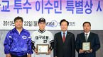 [OSEN=이대선 기자] 22일 오후 서울 도곡동 야구회관에서 열린 고교야구 한 경기 최다 탈삼진 신기록을 세운 대구 상원고 이수민 선수의 특별상 시상식에서 손병조 대구 상원고 교장이 이병석 대한야구협회 회장으로부터 상패를
