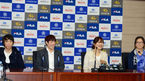 [OSEN=정송이 기자] 22일 오후 서울 올림픽 파크텔에서 진행된 '대한빙상경기연맹 포상금 수여식 식전 미디어데이'에서 김윤재 신다운 박승희 심석희가 질의응답 시간을 갖고 있다. 이번 수여식에는 지난 3월 피겨스케이팅 세계