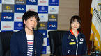 [OSEN=정송이 기자] 22일 오후 서울 올림픽 파크텔에서 진행된 '대한빙상경기연맹 포상금 수여식 식전 미디어데이'에서 이준형 박소연이 질의응답 시간을 갖고 있다. 이번 수여식에는 지난 3월 피겨스케이팅 세계선수권대회에서