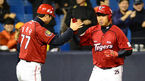 [OSEN=창원, 이대선 기자] 24일 오후 창원 마산야구장에서 열린 2013 한국야쿠르트 세븐프로야구 NC 다이노스와 KIA 타이거즈의 경기, 5회초 1사 3루에서 KIA 이범호가 좌월 동점 투런 홈런을 치고 김종국 코치와 하이파이브를 하고