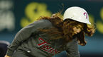 [OSEN=부산 ,백승철 기자] 24일 오후 부산 사직구장에서 열린 '2013 한국야쿠르트 세븐 프로야구' 롯데 자이언츠와 SK 와이번스의 경기 2회말 1사 2,3루 장성호가 자신의 파울타구에 맞고 고통스러워 하고 있다. 개막 후 5연승, 그러